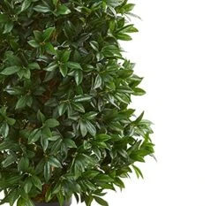 - Whimsical Spiral Tree ; Posh jungle vibes ; Zero maintenance ; Housed in a black planter ; Recommended for decorative indoor use ; Artificial trees are manufactured using synthetic materials and are well designed and constructed to be life-like in appearance. No maintenance needed for this artificial tree; wipe clean with a soft dry cloth ; Item will need to be re-shaped when removed from the box; this artificial tree can easily bend for reshaping purposes – please separate and fluff the branches and leaves to achieve the desired fullness. Measurements are calculated from the furthest outstretched dimension