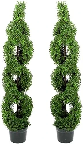 - Set of 2 Artificial Boxwood Leave Topiary Plant