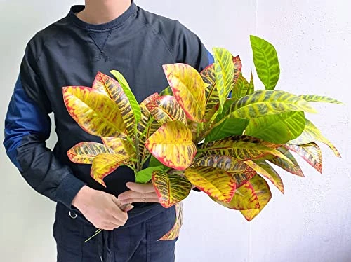 - –Quality Materials: The Artificial Croton Plant Branches and leaves are 3D palstic printing, the branches are made of plastic and inserted with wire. It’s ideal to place the durable Artificial Croton Plant Branches indoor and outdoor, and you can enjoy the evergreen leaves that never fade.