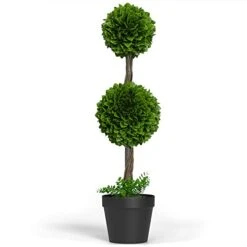 - Natural and realistic look – Lush green leaves give this tall artificial tree a realistic look. The large boxwood topiary plant comes potted in a small pot. Enhance its style by setting it into a decorative farmhouse planter to give it a rustic feel. You can accessorize the tree with lights and ornaments during Christmas season, or use it under a covered patio or front porch decoration near the entrance all year long.