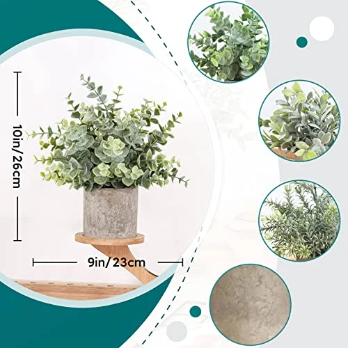 - 【Delicate Design】:The lifelike desk plants can bring green life and freshness to your living space.We adopt a unique design to imitate the frosty gray-green leaves of eucalyptus, and flock the surface of each potted plant. The gray-green leaves make them look more realistic, which is not dust,please don’t worry about it!