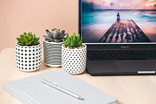 - ☘️ Transform your home and workspace – add a touch of modern sophistication with these three attractive plant pots. Each decorative pot has been beautifully crafted to add a touch of vibrance and fun. These coordinated designs are suitable for the kitchen, bedroom, bathroom, mantle, bookcase, office space. These really are the prefect pots for faux succulents. They look fantastic anywhere!