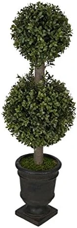 This artificial boxwood double ball topiary has been crafted with an eye for detail. The plastic boxwood leaves are realistic and natural-looking. The topiary itself measures a full 2 feet is approximately 10″ diameter, and comes in a traditional resin urn (6″ diameter x 8″ tall). Total height is approximately 30″. This topiary is the perfect addition to a foyer or covered entryway. This is only recommended for indoor use or use in a covered and protected outdoor area.