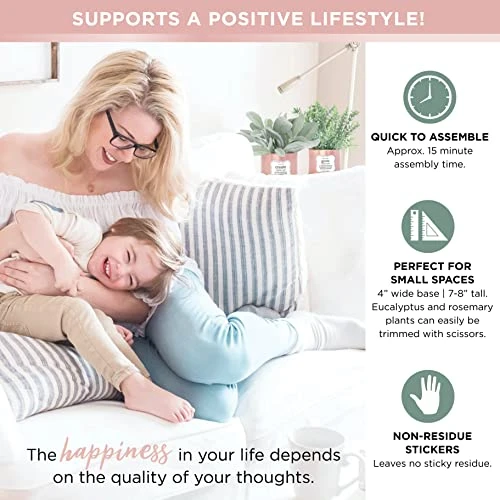 - β FLOCKED LEAVES ! This set of home and office decor for women comes with 3 flocked, small fake plants: rosemary, eucalyptus and oh-so-velvety lambβs ear. Simply place each faux desk plant into a tin and add the decorative white rocks to complete the 10 minute setup. And presto: motivating home office decor just like that! The eucalyptus and rosemary can easily be trimmed with scissors for a more sculpted look if preferred and, best of all, these plants do not require watering!