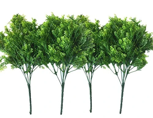 - 【Certified Safety Material】: Faux grass bushes in lush green sustain the sunlight of spring for you in any time.Natural fresh color,poisonless and harmless 100% SAFE. This plastic bushes are easy take care of,can against fierce wind rainstorm and insolation.