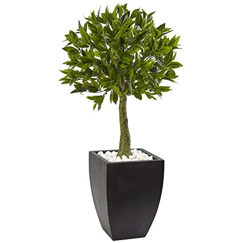 Nearly Natural 5960 4.5′ Olive Topiary Tree With European Barrel Planter