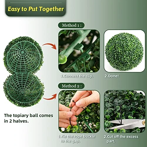 - Easy Installation – 2 Packs of topiary balls come in 4 halves, and the two parts can be easily joined together with a snap or the included cord closure without any extra tools required.