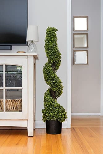 - EVERGREEN BEAUTY – Artificial spiral topiary plants provide a year-round lush greenery that doesn’t fade or wither like real plants. You can enjoy their vibrant and fresh appearance in any season, adding a touch of elegance and charm to your indoor or outdoor space.