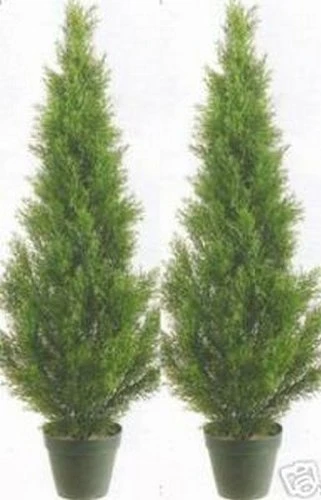 Three 3 Foot Artificial Cedar Topiary Trees Potted Indoor Or Outdoor