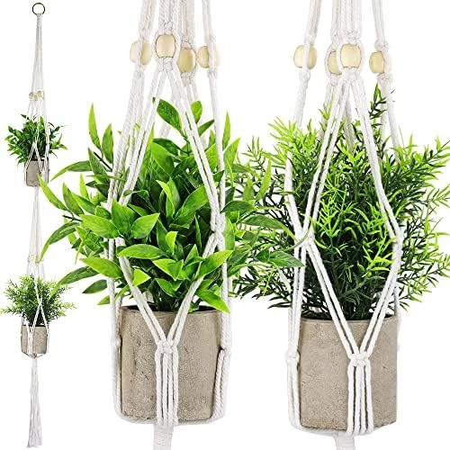 - ????【Hand-woven Plant Hanger】This fake plant set includes 1 piece 2-tiers 58.2″ hanging rope with handmade wood beads, cute and fashionable bohemian style. It adds an elegant look and natural aesthetic to your home. You can use it to hang plants on the ceiling or walls, you can also adjust the length to meet different needs.
