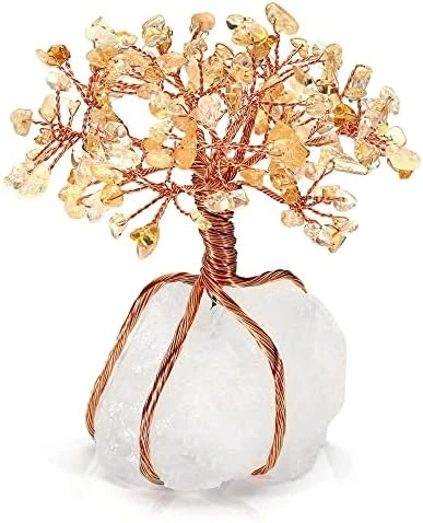- â™§ Money Tree and Stone Total heigh is approximately 5.1″-6.3″(13-16cm)(when open up leaves);Size for Rose Quartz Stone is approximately 2.36″- 3.15″(6-8cm);Copper Wire;Total weight:approx 400 grams/pc; Material:Natural Stone & Copper.