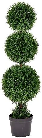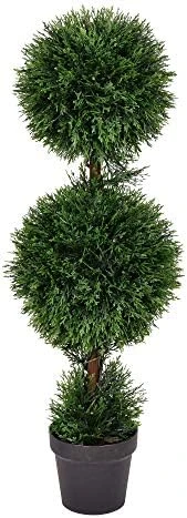 Vickerman 3′ Artificial Double Ball Green Cedar Topiary. Introducing Vickerman’s 3-foot Tall Faux Cedar Double Ball Topiary – the perfect addition to your front porch or any outdoor space. This stunning artificial plant features two realistic cedar topiary balls that will elevate the ambiance of your decor. Made with high-quality materials, this artificial topiary is UV resistant and requires no maintenance, making it the ideal choice for those who want the look of a real tree without the need for upkeep. Simply place it in a decorative pot of your choice and enjoy the beauty of this faux topiary. This faux tree is perfect for adding a touch of elegance and charm to your front porch or as a welcoming decoration by your front door.