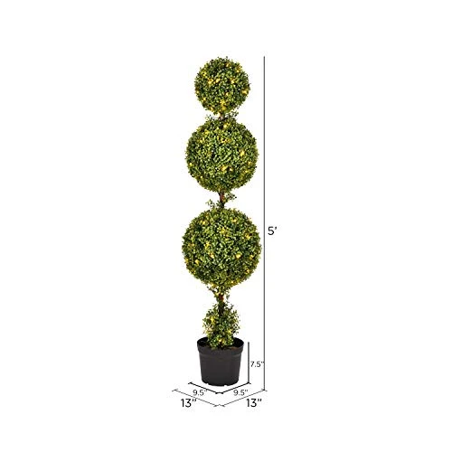 - Triple ball boxwood tree comes potted in a black plastic insertable pot, making this plant easy to place in the decorative container of your choice. Pot measures 7.5” high x 9.5” diameter.
