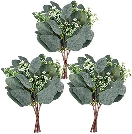 - The eucalyptus leaves stems can be used to make wreaths, wedding bouquets, wedding decorations, or to decorate dining tables, office tables, etc. These artificial flowers for decoration will open up more possibilities for your home or wedding decoration.