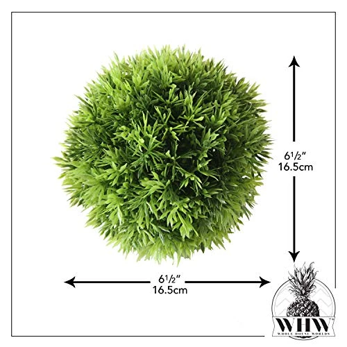 Capture the look and feel of grass without the upkeep with the high quality Grammercy Grassy Ball. Inspired by nature, each sprout of lush growth on this fine reproduction topiary ball is crafted with intricate details that mimic the real thing. Fantastic size. The Grammercy Grass ball is 6 inches in diameter and ideal for adding a pop of green no matter the season. Versatile, this grassy orb is easily at home in modern city chic pads or rustic country style farmhouses. Full growth all the way around. Each ball is made to be fully populated with even blades of grass. A perfect touch of greenery for every space, this faux topiary grass ball is an easy fix for adding a lush accent and relaxed vibes in your home. Pro-florist quality. This topiary faux grass ball has been artisan crafted using the finest grade plastic materials and the most advanced manufacturing techniques to ensure botanical accuracy. For indoor or outdoor use. Designed for use when fresh greens are difficult to find, group a few of these gorgeous green globes together any time of the year. Enjoy! By Whole House Worlds Welcome to the product line of Whole House Worlds. The New York based company offers high quality, stylish products for every room in the house, and beyond. From the kitchen, to the living room, to the bedroom, dining room, home office, closet and garden: Our criteria are comfort, quality, style and value.