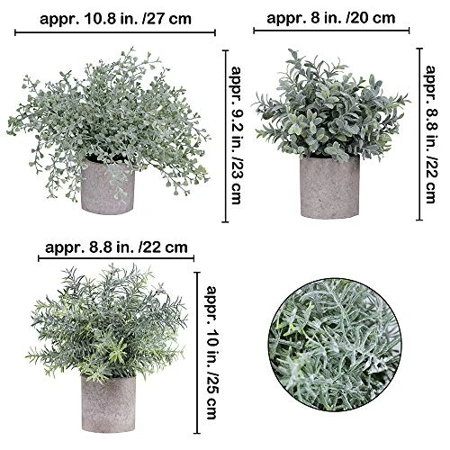 - Color: This set of Mini Potted Greenery features eucalyptus, boxwood and rosemary in silver green, perfect for creating a comfortable atmosphere you can enjoy for the years to come.